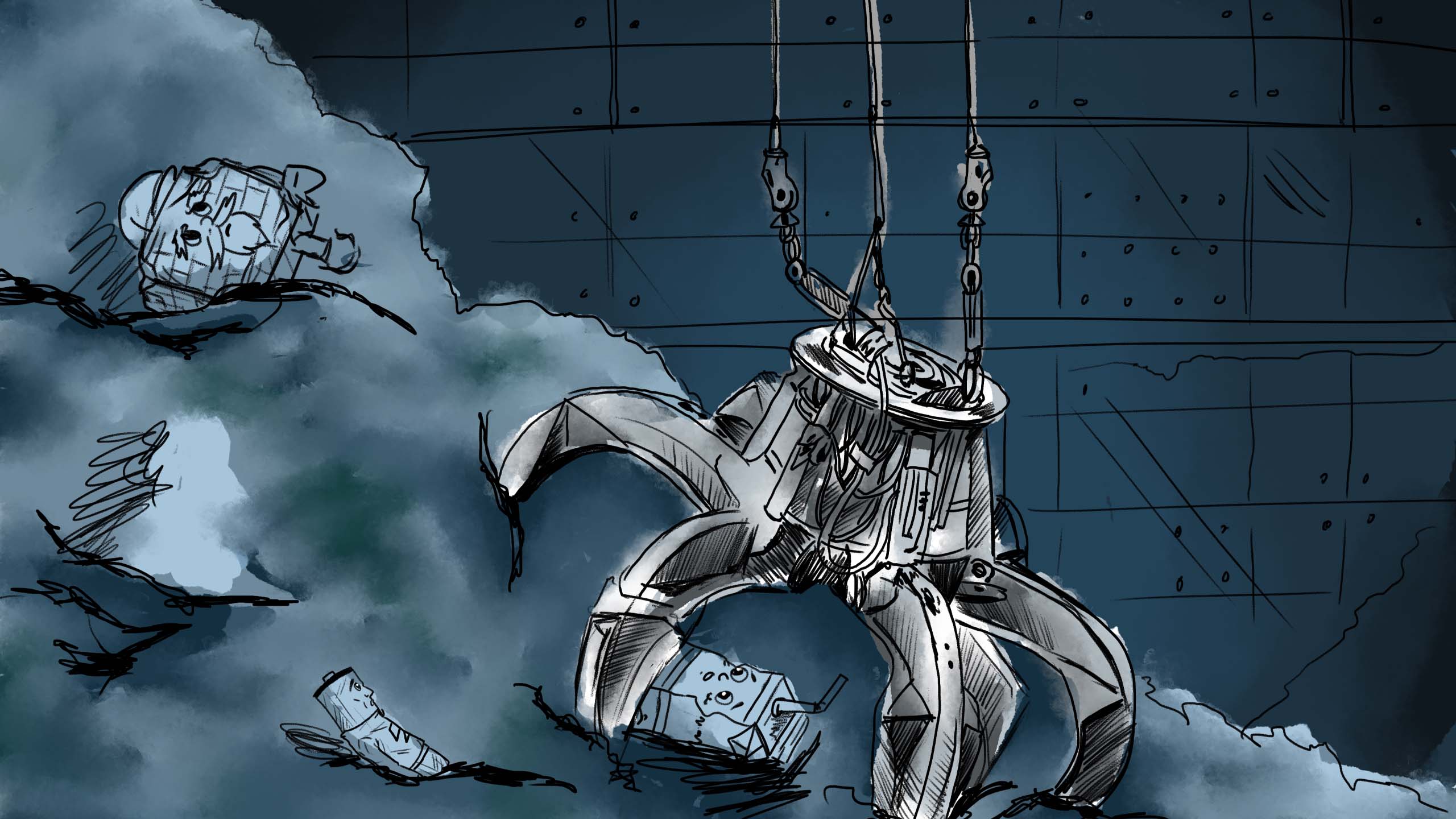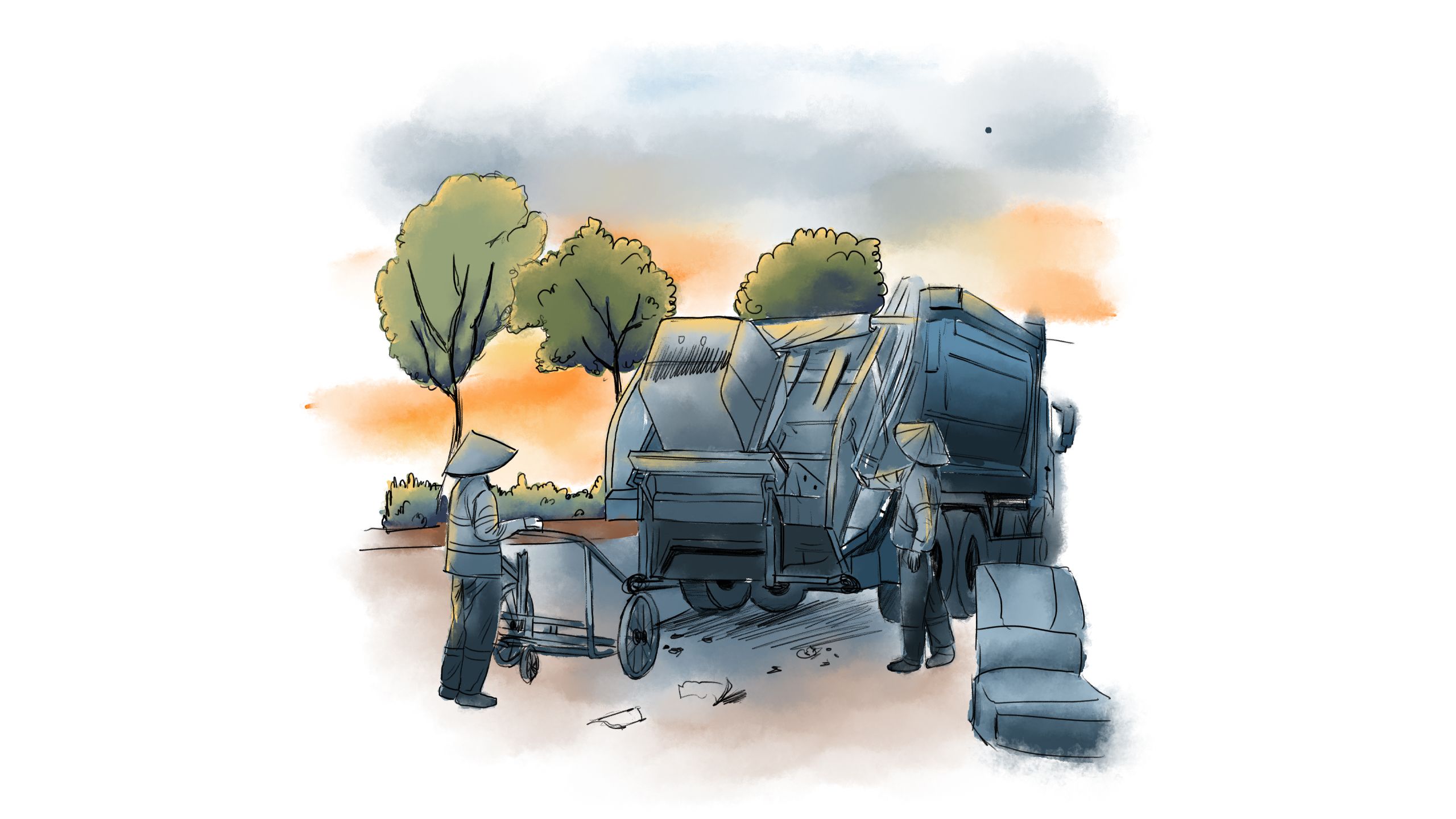Và rồi xe rác đến. Tiếng loảng xoảng của từng chiếc xe đẩy khi được đổ vào thùng chứa vang lên giữa con phố ồn ào của giờ tan tầm. Hộp Sữa chịu đựng cảm giác khó chịu khi bị nghiền ép, lăn trượt giữa đủ loại mảnh vụn. Không có sự tách biệt, không có quy trình phân loại đúng như nó từng tưởng tượng. Cảm giác lạnh lẽo bao trùm lên cơ thể méo xẹo của Hộp Sữa, khiến nó thấy lạnh hơn cả lớp kim loại của Cục Pin đang nằm cạnh.