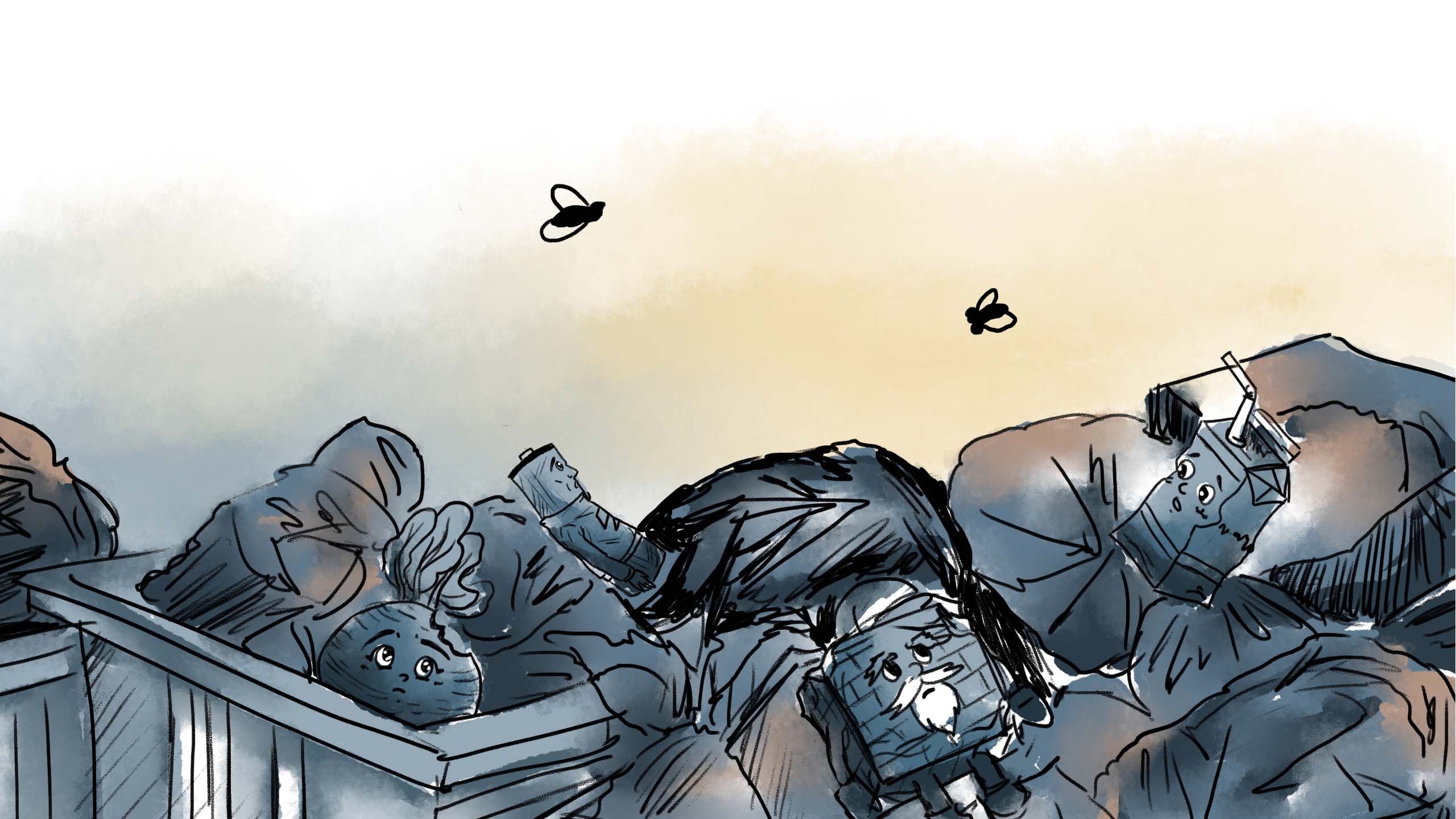 Sau vài giờ lăn bánh trong bóng tối, xe rác dừng lại. Hộp Sữa cảm nhận rõ sự thay đổi của không khí: mùi nồng hơn, nặng hơn và đặc quánh. Khi thùng xe nghiêng xuống, toàn bộ rác bị đổ ào vào một hố sâu. Hộp Sữa rơi tự do, va vào những khối rác khổng lồ nằm im lìm. Xung quanh nó không còn là vài túi rác quen thuộc trong khu dân cư, mà là một hố rác sâu và rộng, nơi rác thải rắn sinh hoạt từ toàn thành phố đổ về.