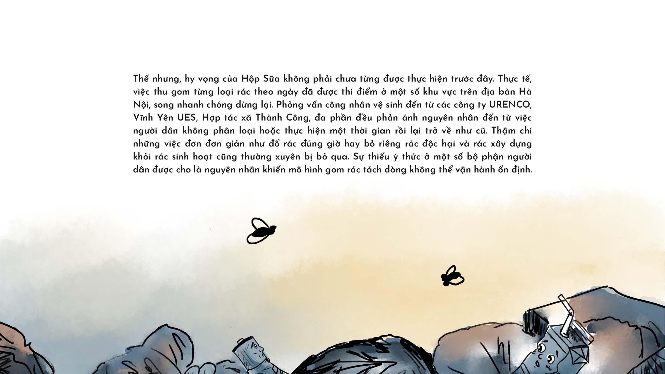 Những lo lắng của Hộp Sữa đã phản ánh đúng tình trạng hiện nay tại nhiều phường ở Hà Nội. Mặc dù Luật Bảo vệ Môi trường 2020 đã quy định chi tiết về việc phân loại rác thải rắn sinh hoạt tại nguồn từ 1/1/2025, tình trạng rác vứt chung tại các điểm tập kết vẫn diễn ra hàng ngày. Tâm lý "đằng nào rác cũng gom chung lên xe" là nguyên nhân chính khiến nhiều người chưa có động lực thực hiện việc phân loại. Đồng thời, sự thiếu hụt cơ chế giám sát, nhắc nhở và xử phạt dù đã được quy định khiến việc phân loại trở thành lựa chọn tự nguyện thay vì nhiệm vụ bắt buộc. Đây là điểm nghẽn cản trở luật được đưa vào áp dụng, xuất phát từ sự thiếu động cơ và niềm tin thực thi. Sự đứt gãy ngay từ bước đầu tiên đã mở ra vòng luẩn quẩn trong quá trình xử lý rác thải đô thị.